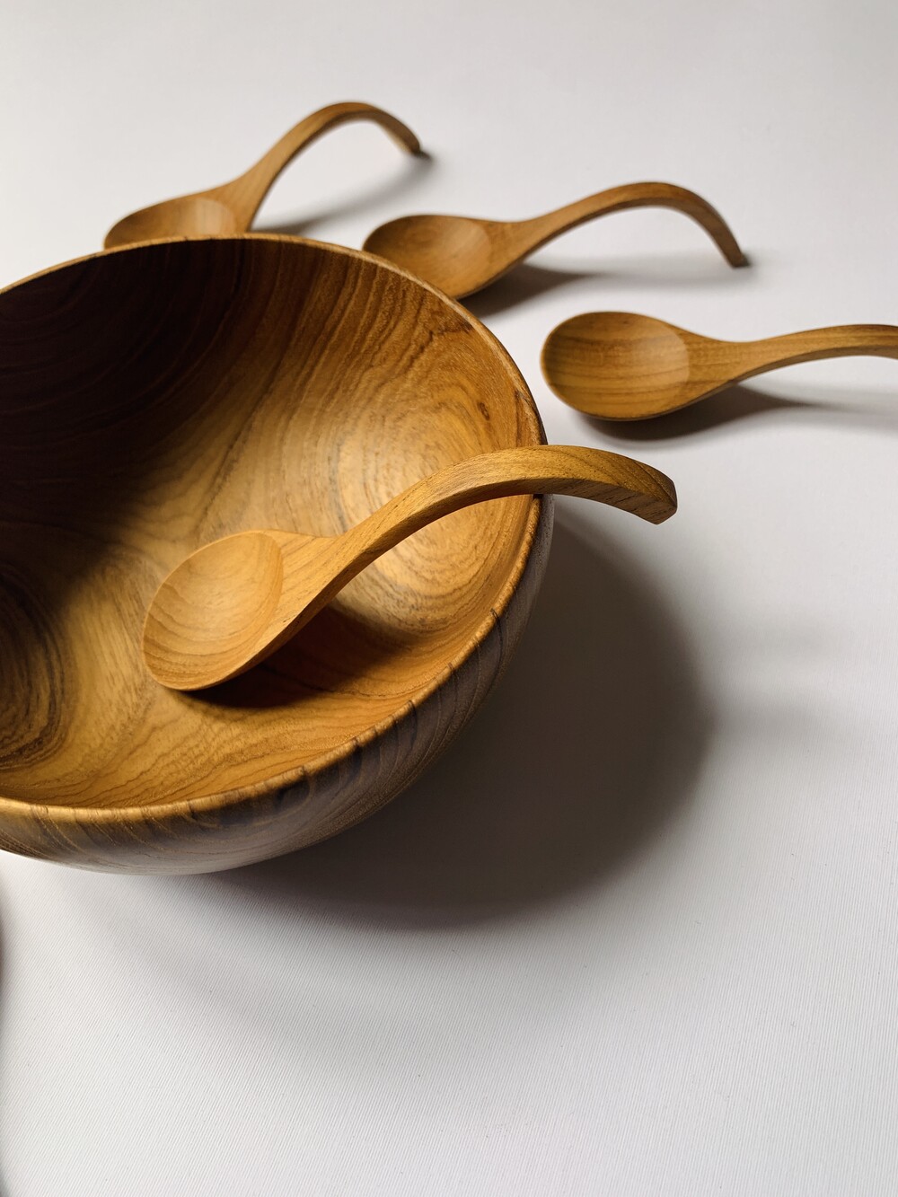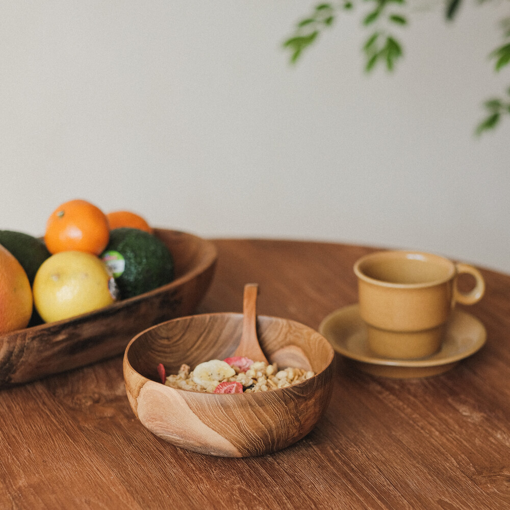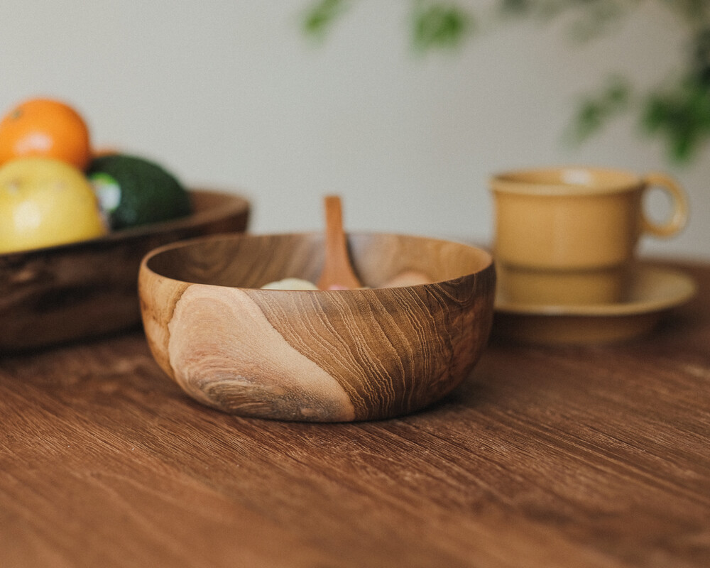 습기에 강하고 견고하며 뒤틀림이나 갈라짐이 적어서 식기류에 매우 적합한 수종 입니다. 티크우드의 너무 가볍거나 무겁지 않은 톤에서 느껴지는 고급스러움이 있고 다양하고 화려한 나뭇결(Wood Grain)에서 다채로움을 느낄 수 있습니다.