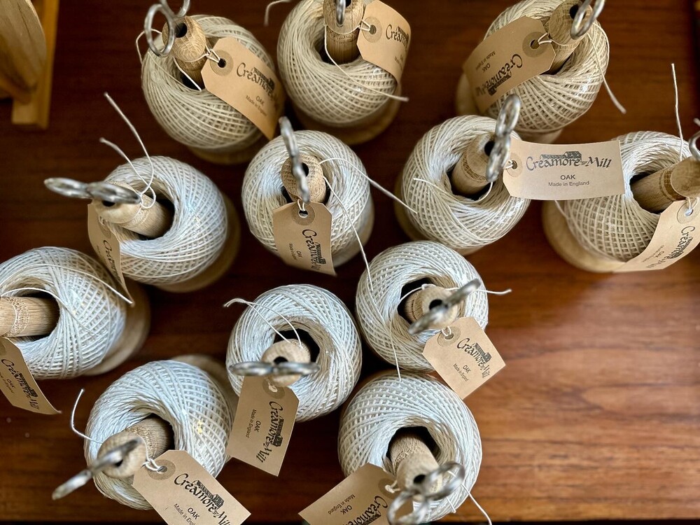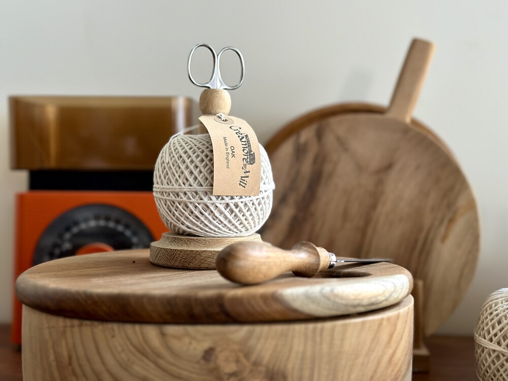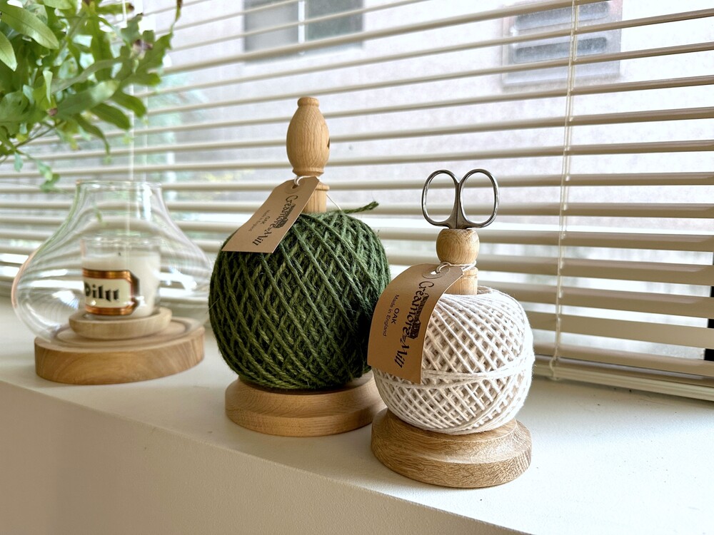 면끈홀더와 가위셋트는 코튼 100%로 만들어진 실타래가 견고한 영국오크홀더에 잘 꽂혀있는 제품이에요.