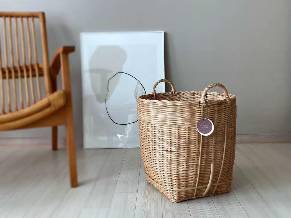 바스켓의 둘레를 둘러싸고 있는 라탄줄기, 입구쪽에 다른형태의 짜임, 세로라인으로 형성된 라탄중심축 등, 스퀘어 바스켓의 디자인은 다른곳에서 찾기힘든 딜라이츠의 감성을 가득담아 만들어졌습니다.