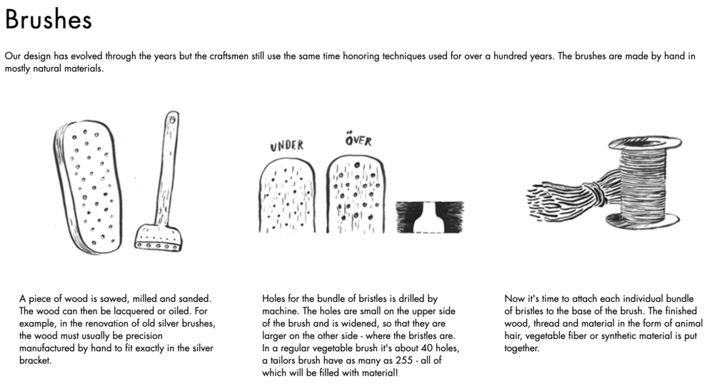 한트베르크는 스웨덴어로 크래프트 라는 말입니다. 브러쉬와 생활용품 등을 제작하는 스웨덴 브랜드로서 1870년이후 100년이 넘는 동안 장인정신의 역사를 가지고 수많은 제품을 생산해오고 있습니다. 이 브랜드는 사회적으로도 가치있는 활동을 하는데 그에 하나가 직원 17명 중 여전히 6명이 시각장애인, 핸드크래프트 장인이 포함되어 있습니다. 거기에 그들이 사용하는 모든 재료는 자연에서 가져오는 재료로, 나무틀에 말총이나,