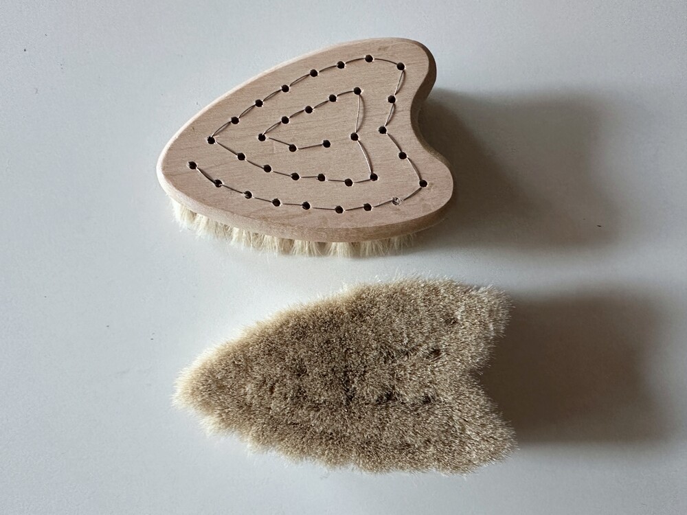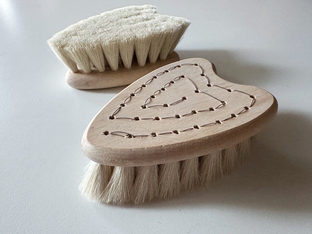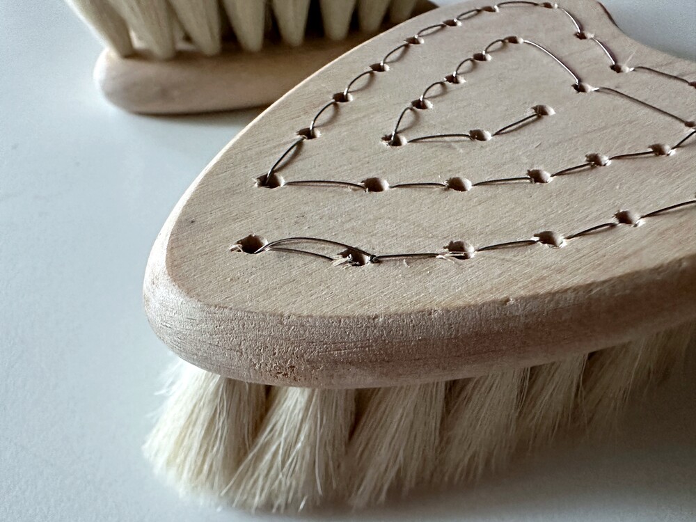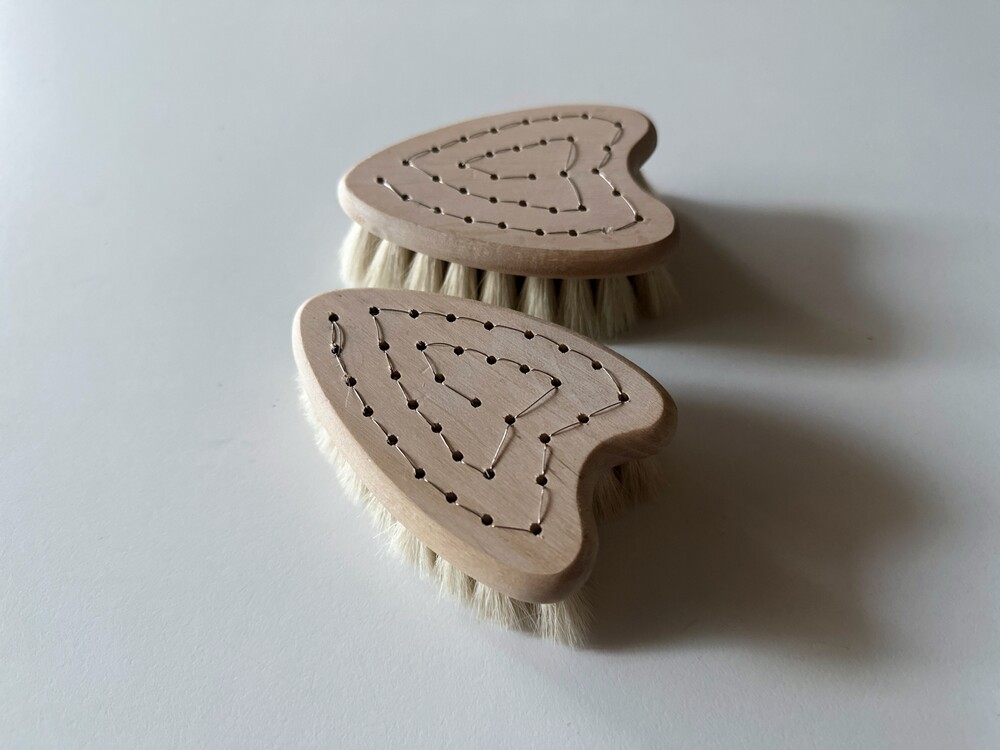 A small heart for the little ones. The soft goat hair gently smoothing the baby's locks of hair.