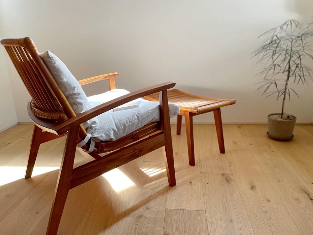 하부는 티크 원목으로 제작, 시트는 이지체어처럼 라탄으로 구성되어져있습니다.