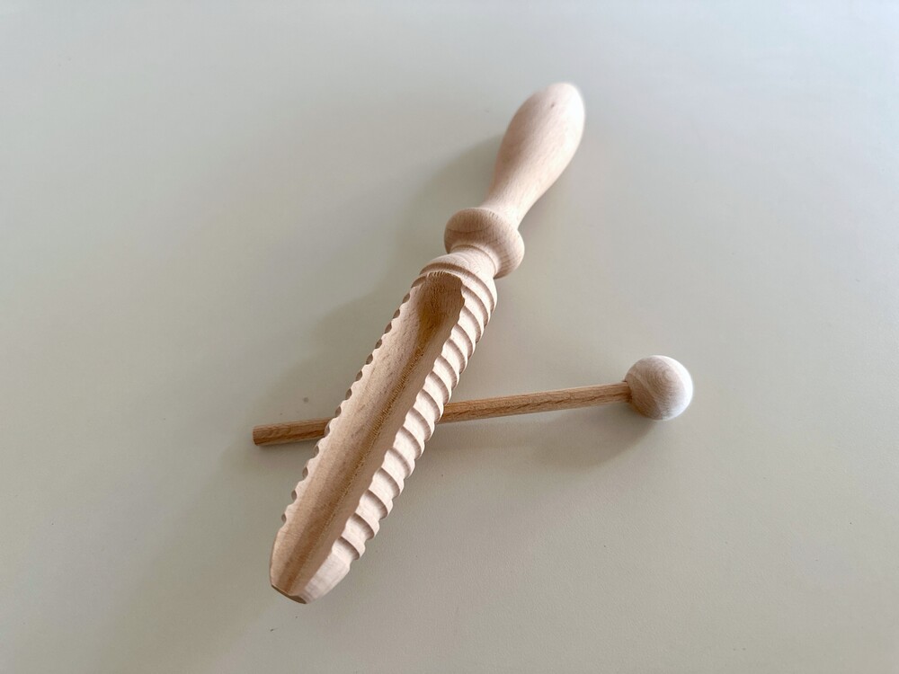긴 막대를 이용해 씨를 담은 추트의 아래쪽을 긁어주면 일정한 양의 씨앗을 분배할 수 있습니다